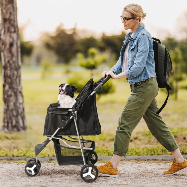 3. Folds in Seconds: Collapse this lightweight stroller in a flash with our user-friendly folding design, making it ideal for seamless storage and transport, so you're always ready for the next adventure with your pet.