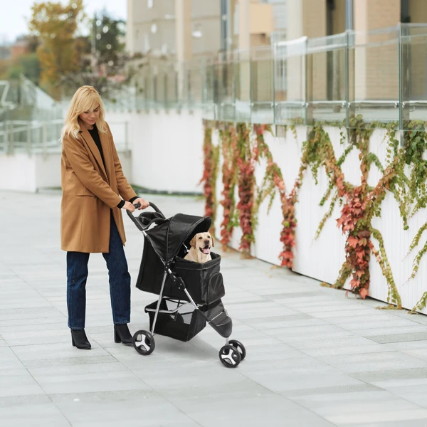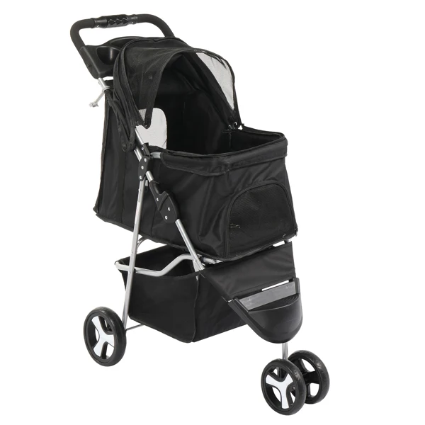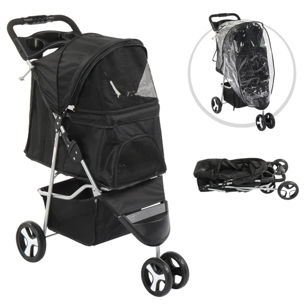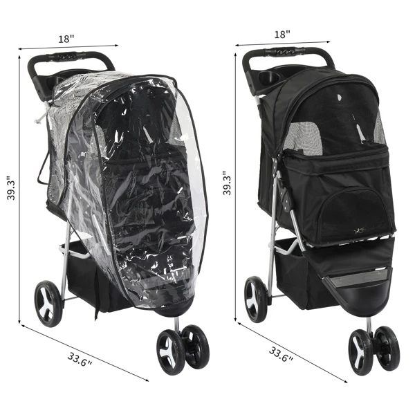 Make every outing with your pet a delightful experience with our 3 Wheels Pet Stroller. Designed for medium to small dogs and cats, this stroller is your go-to option for safe, comfortable, and convenient pet travel. The stroller combines functionality with convenience, featuring ample storage, a removable liner for easy cleaning, and a large mesh window for ventilation and visibility.